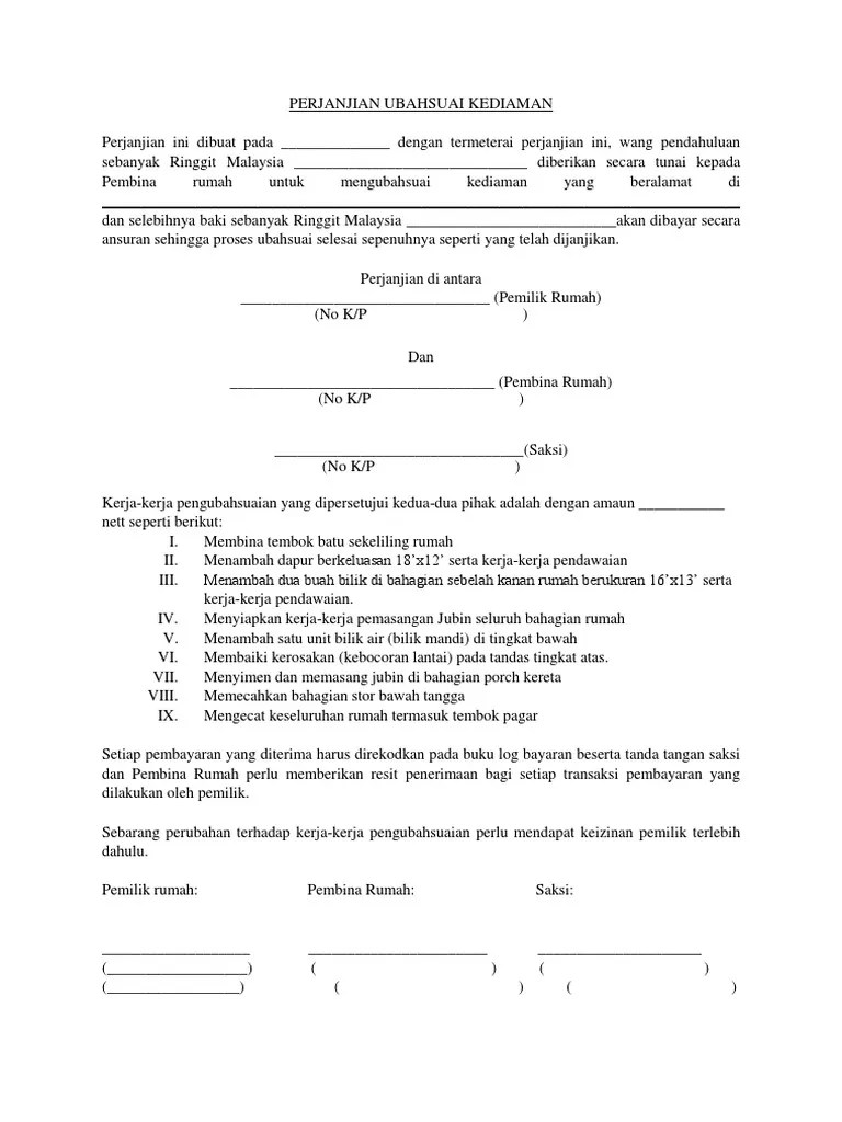 You can document a complaint by sending a contact is obtainable surat perjanjian bina rumah. Contoh surat perjanjian kerja ubahsuai rumah malaysia.